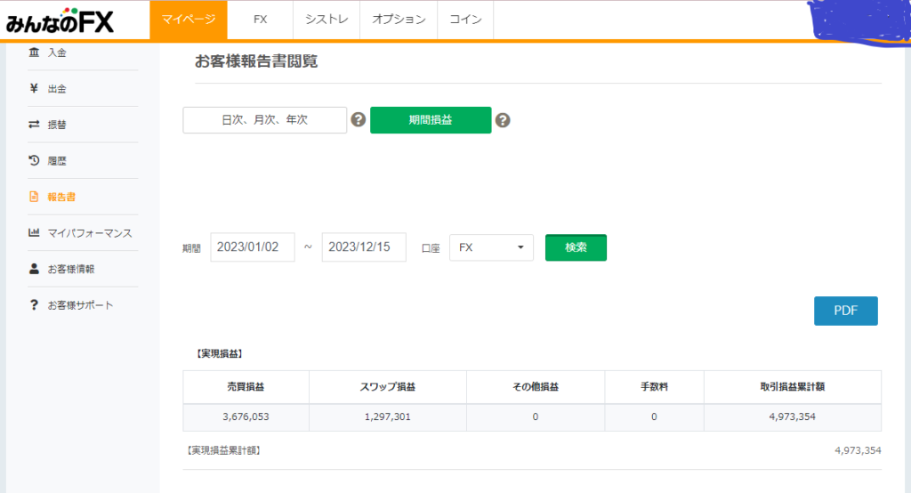 11月から12月のMXN/JPYの保有量は約200Lotだったのですが、キャンペーンで5800円ほど増額分が入金されました。